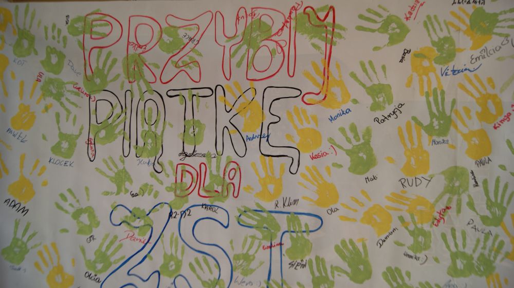 Okazało się, że ogromną wartość może mieć... piątka - ta przybita dłonią. Gimnazjaliści tak chętnie "przybijali nam piątki", że drugiego dnia byliśmy zmuszeni przygotować w tym celu drugą powierzchnię.