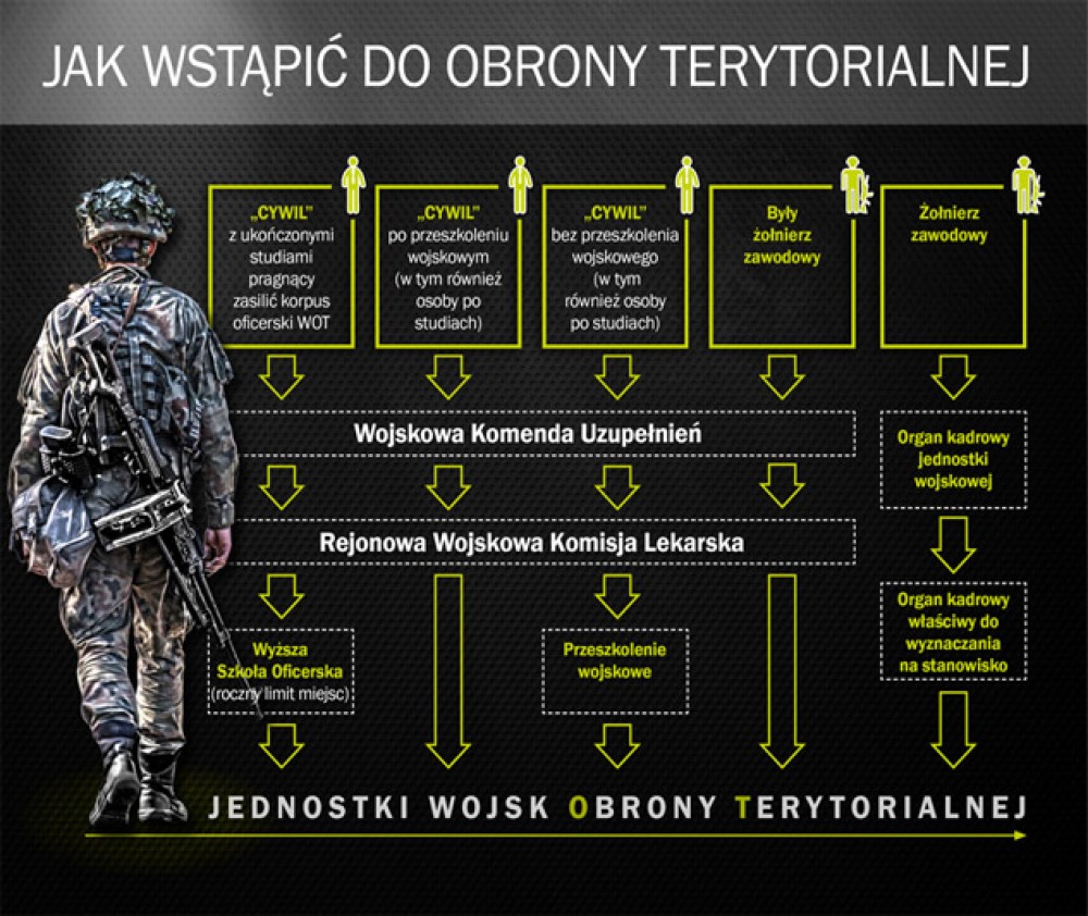 Komenda Wojskowa Uzupełnień w Suwałkach serdecznie zaprasza do wstąpienia w szeregi nowego rodzaju Sił Zbrojnych, tzw. Wojsk Obrony Terytorialnej. Już teraz w Suwałkach funkcjonuje 12. batalion lekkiej piechoty. Służą w nim mieszkańcy naszego regionu, którym dobro naszej Ojczyzny nie jest pojęciem obcym.